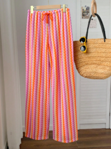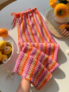 Comfortcana 2026 New Summer Clothes/Spring Clothing/Winter Clothes/Festival Outfits For Women/ Easter Outfits/Party Bottom For Women/Beach Outfits For Women/Wedding Party Outfits/Graduation Outfit For Mother/Elegant Pants For Women/Casual Sets For Women /Vacation Outfits Women/Women’s Sportswear/Women’s Dress Pants/ Luxury/ Y2K/Work Outfits For Women/Country Concert Outfit/Shiny Pants/Peplum/Pink Rainbow Texture Striped Pants Crochet Beach Wear Knit Set Beach Sets For Women Bathing Suit