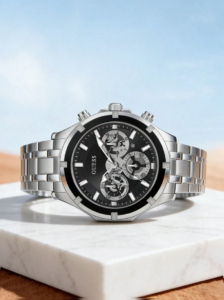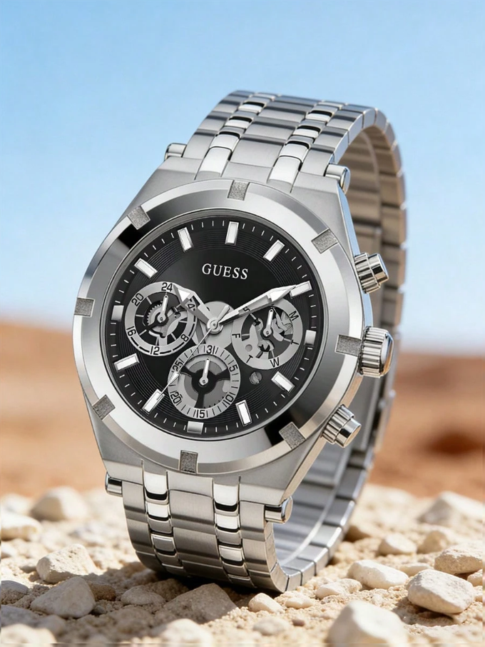 Guess 1pc Men’s Silver Multi-Function Quartz Wrist Watch, Casual & Fashionable, Suitable For Daily Wear, Great Gift For Boyfriend, Friend, Husband – GW0260G1