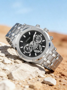 Guess 1pc Men’s Silver Multi-Function Quartz Wrist Watch