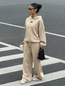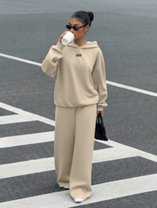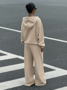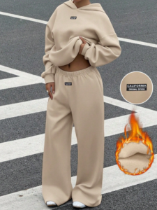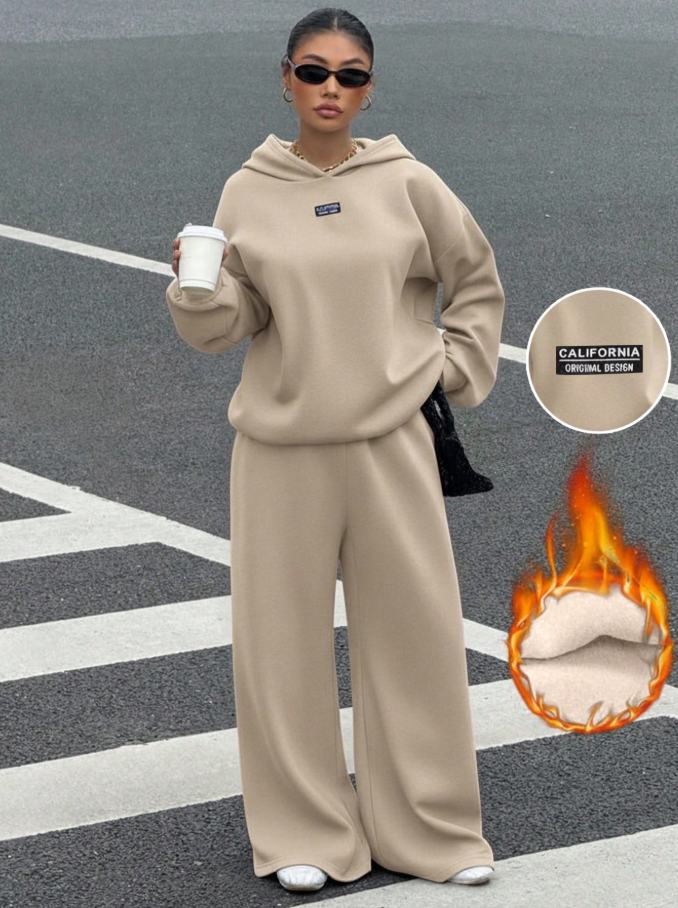 Muchica Women’s Khaki Thermal Lined Casual Loose Hoodie And Sweatpants 2 Pieces Set