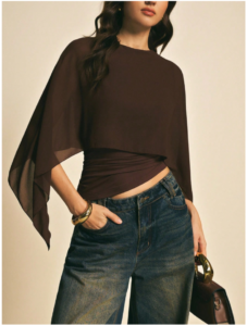 Poéselle Women’s Brown Shawl Collar Casual Top,Elegant Blouses For Women ,Casual Women’s, New Year’s For Women,Suitable For Daily Wear, Going Out, Commuting Fall/Winter, Batwing Sleeve Top, Coffee Brown Top, Dark Brown To