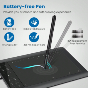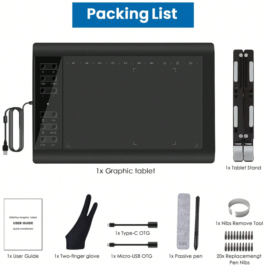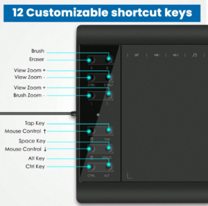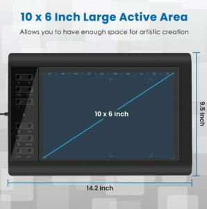 Upgraded 10 X 6 Inch Drawing Tablet With Extra-Large Active Drawing Area, 16384 Levels Passive Stylus And 12 Shortcut Keys. Compatible With PC/Android, Ideal For Drawing And Design. Beautifully Packaged, Perfect Christmas Gift For Friends And Family.